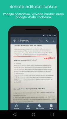 S CamScanner sa rozlúčite s objemnými kopírkami a privítate kvalitu profesionálnych skenov priamo vo vrecku. Vďaka inteligentnému orezaniu a automatickému vylepšeniu zabezpečuje aplikácia, že každý sken bude mať prvotriedne farby, jasné rozlíšenie a ostrý text, ktorý je ľahko čitateľný. Funkcia OCR ide ešte ďalej – umožňuje vám text nielen rozpoznať, ale aj ho extrahovať pre jednoduché vyhľadávanie, úpravy alebo zdieľanie. Po vytvorení dokonalého dokumentu ho môžete okamžite zdieľať s kolegami alebo priateľmi prostredníctvom sociálnych médií, e-mailových príloh alebo zabezpečených odkazov. Pre tých, ktorí vyžadujú vyššiu úroveň kontroly, ponúka CamScanner pokročilé nástroje na úpravu, vrátane anotácií a možnosti pridania vlastného vodoznaku, čím zabezpečíte originalitu vašich výtvorov.