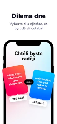 Objavte Dilemmaly - Co bys radši? a ponorte sa do sveta náročných a často aj vtipných dilem. Hrajte s priateľmi, rodinou a porovnajte vaše voľby s miliónmi hráčov. Čaká na vás viac ako 1 000 bezplatných kariet pre nekonečnú zábavu!