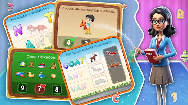 Učiteľov materských škôl je komplexná vzdelávacia hra pre predškolákov. Deti objavujú ABC, riešia matematiku, kreslia a maľujú v jedinej zábavnej aktivite. Podporuje učenie a kreativitu pre ich každodenné úlohy.